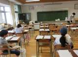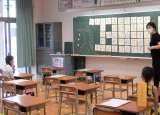 アルファベットの学習では、子供たちが間違いやすいところを中心に先生が黒板に書いて...