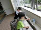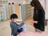 本を借り終わった子は、学校図書館の向かいにある総合学習室で手洗いをしっかりして帰...