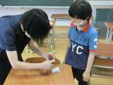 2年生が家庭学習で「ゴムでうごくおもちゃづくり」に取り組みました。課題受け渡しの...
