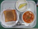 本日の献立 *チーズトースト *牛乳 *ポテトスープ *フレンチサラダ ...