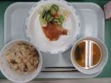 本日の献立 *きび入りおこわ *牛乳 *鶏肉のみそ焼き *すまし汁 *...