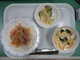 本日の献立 *礒おこわ *牛乳 *みそ汁 *野菜の香味あえ 食材産地 ...