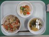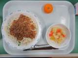 本日の献立 *パエリア *牛乳 *野菜のスープ *フルーツヨーグルト ...