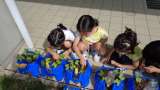 1年生は毎日、朝顔の水やりをしています。少しずつ大きくなっていくのが楽しみです。