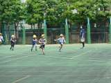 低学年のリレー練習を早朝からやっていました。バトン渡しもずいぶん上手になりました...