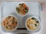 本日の献立 *中華風おこわ *牛乳 *たまごスープ *きゅうりの中華味 ...