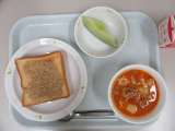 本日の献立 *セサミトースト *牛乳 *ミネストローネ *メロン 食...