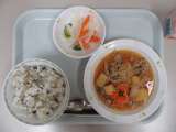 本日の献立 *雑穀ごはん *牛乳 *鶏肉のみそ焼き *すまし汁 *ひ...