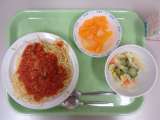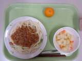 本日の献立 *スパゲティミートソース *牛乳 *ポテト入りフレンチサラダ ...