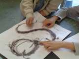 上の写真は、図工「龍を見る」という学習での作品です。友達の作品を見て感想を言った...