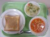 本日の献立 *バタートースト *牛乳 *ミネストローネ *コーンサラダ ...