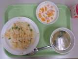 本日の献立 *シーフードピラフ *牛乳 *野菜スープ *フルーツヨーグル...