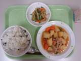 本日の献立 *雑穀ごはん *牛乳 *鶏肉のみそ焼き *けんちん汁 *ひ...