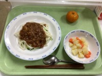 本日の献立*ジャージャーうどん*牛乳*マセドアンサラダ*冷凍みかん ...
