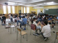 上:5年生の音楽です。手遊びをしながら「茶摘み」を歌っています。担任も参加しなが...