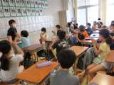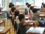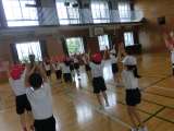 1年生の体育の授業の様子です。音楽に合わせて体操をしました。先生の動きをよく見て...