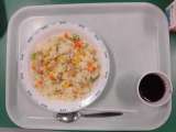 本日の献立 *3色ピラフ *牛乳 *ぶどうゼリー 食材産地 えだ豆 ・・・北...