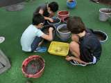 小さな小さな種から発芽した苗を大切に手に取って植えました。土づくりをする子、苗を...