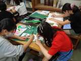 図工ではステンシル版画に取り組んでいます。カッターを使って細かい作業。みんな集中...
