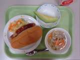 本日の献立 *セルフホットサンド *牛乳 *野菜のスープ *メロン 今日...