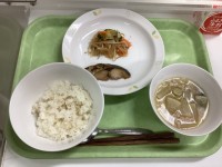 本日の献立*麦ごはん*牛乳*魚のカレー竜田揚げ*かきたま汁*野菜のごま風味&nb...