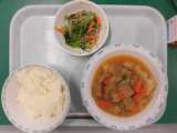 本日の献立 *ごはん *牛乳 *五目うま煮 *青菜のごま風味 食材産地 にんじ...