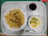 本日の献立 *カレーピラフ *牛乳 *フレンチサラダ *ぶどうゼリー 食材産地...