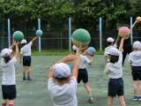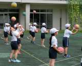 次はボールを使った運動です。先生がボール運動で大切なポイントを伝え、練習します。...