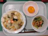 本日の献立 *中華丼 *牛乳 *ナムル *冷凍みかん 食材産地 にんじん ・...