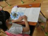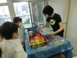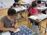 子供たちが作った色とりどりの海の世界に、魚を泳がせていきます。このクラスは、その...