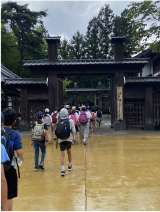 日光江戸村に到着し、忍者からくり屋敷や忍者仕掛迷路など楽しんでいます。