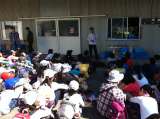 3日目の朝会です。 今日はりんご狩りです。美味しいりんごが取れますように!!
