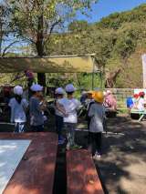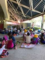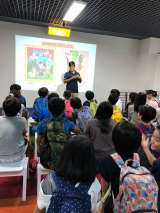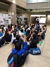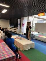 5つのブースに分かれて、日本文化について、英語でレッスンです。みんな楽しそうです...