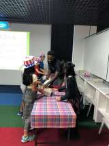 後半は、それぞれのブースで、様々な活動を体験しました。 写真は、お買い物、カルタ...