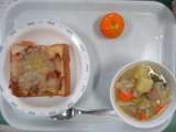 本日の献立 *ピザトースト *牛乳 *ポトフ *冷凍みかん 食材産地...