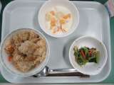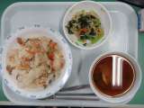 本日の献立 *鶏めし *牛乳 *野菜のじゃこあえ *フルーツヨーグルト ...