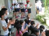 2年生の演技を見ていた他の学年の子供たちが、2年生の一生懸命な姿に大きな拍手と声...