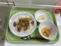 本日の献立*ごはん*牛乳*魚の竜田揚げ*みそ汁*野菜のからしあえ しょうゆダレに...