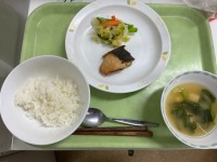 本日の献立*ごはん*牛乳*魚の一味焼き*みそ汁*野菜の即席漬け 毎月19日は食育...