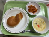 本日の献立*ミルクパン*牛乳*コーンシチュー*切り干しのアラビアータ  辛さは控...