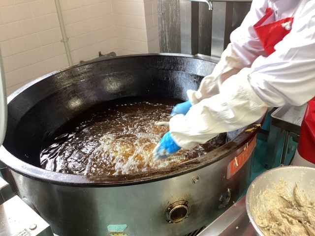 今日の給食は、冷やしきつねうどん、牛乳、ししゃものごま揚げ、天ぷら(かぼちゃ)、くだもの(ぶどう)です。