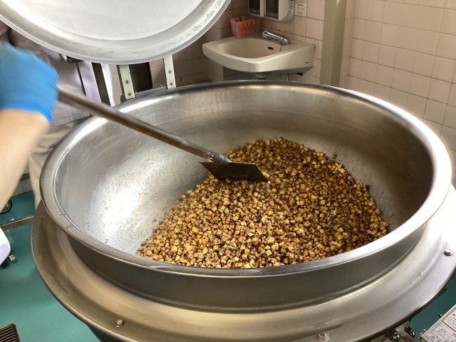 かりんとうの名前の由来は、かりんの木の色に似ていることに由来します。また、噛んだ時にカリッと音がするためという説もあります。お豆かりんとうは、さつまいもと大豆を使い、味は砂糖、牛乳、黒ごまでつけています。カリッとした食感を楽しみましょう。