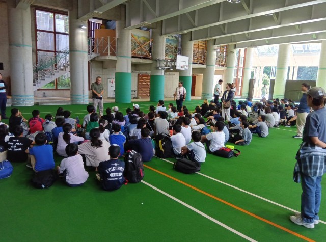 開室式が終わって、昼食です。屋根付き広場で食べます。