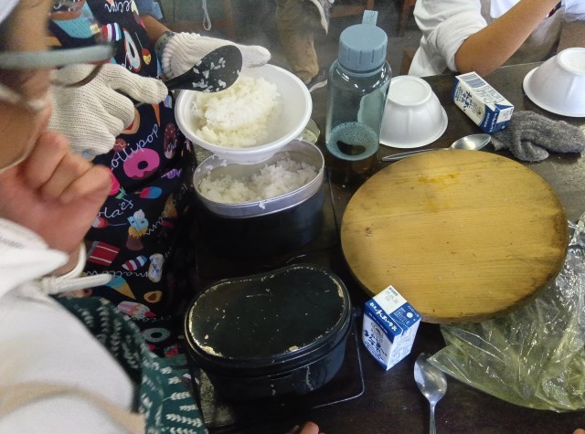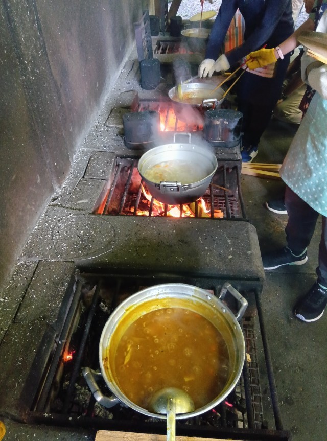 里山入門の次はカレー作りでした。火を起こして、野菜を切ってお米を研いで、火にかけました。ご飯もカレーもとても上手にできました。