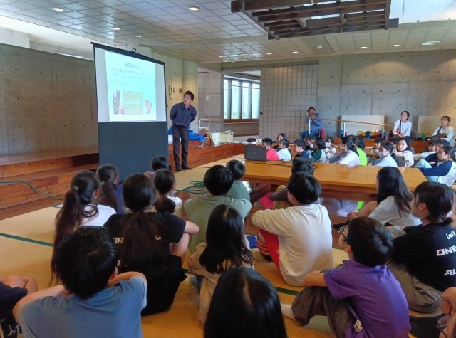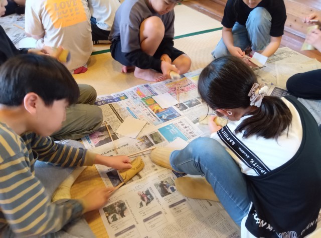 マスつかみの後は、箸作りです。間伐材を活用します。まず、日本の林業の話を聞き、箸作りに取り掛かりました。思い通りの箸を作ることができるでしょうか。