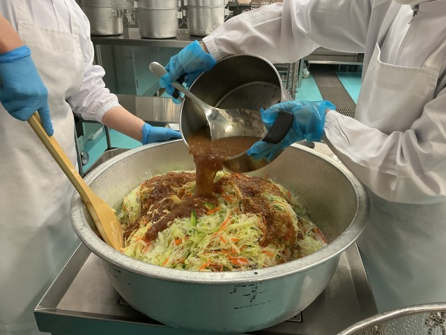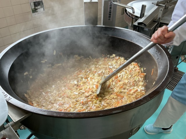 今日の給食は、中華丼、牛乳、春雨サラダ、くだもの(柿)です。