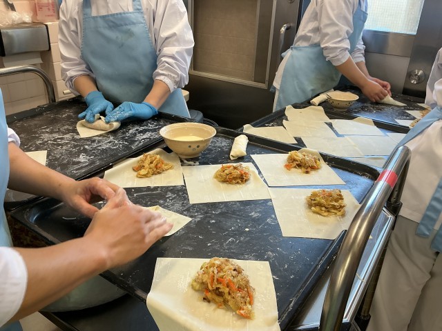 春巻きは、1つずつ具を皮で巻いて揚げました。