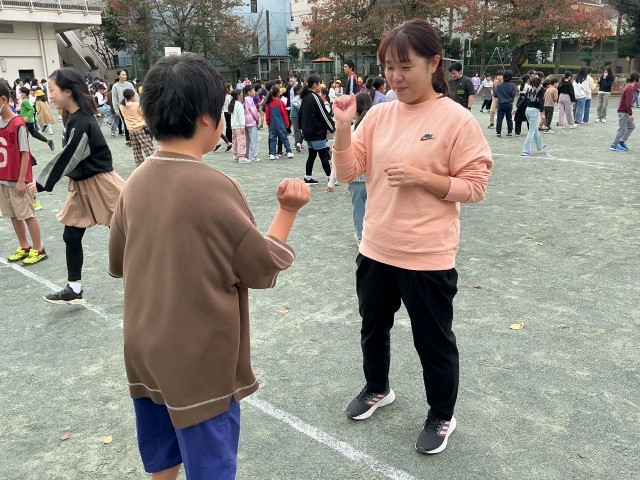 児童集会では、大きな空の下で先生や集会委員会の子供達とジャンケンを行いました。