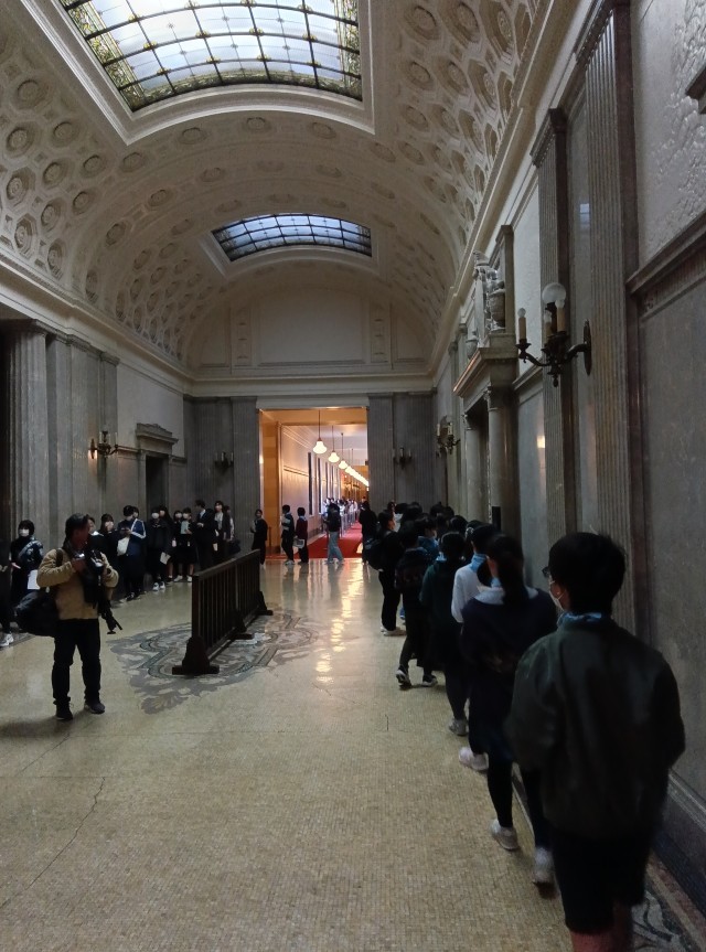 国会を見学しました。建物の壁や床、様々なところが丁寧な仕事を施されていました。すごい建物でした。