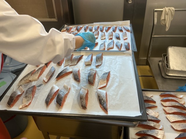 日本で最初の給食は、明治22年に山形県のお寺の中にあった小学校で始まりました。貧しくてお弁当を持ってこられない子どものためにお坊さんがおにぎりや魚、漬物を用意したそうです。